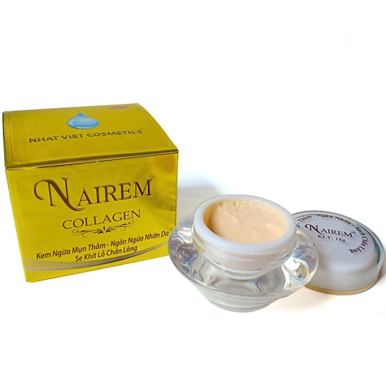 – Kem dưỡng Nairem Collagen: Đây được coi là dòng kem dưỡng Nairem bán chạy nhất với các công dụng chính là dưỡng trắng da hiệu quả, mịn màng, tẩy tế bào chết trên da, hỗ trợ tái sinh lớp biểu bì, làm sạch da giúp se khít lỗ chân lông và đẩy lùi lão hóa nhờ sự cung cấp collagen. Sản phẩm có màu xanh dương bắt mắt và được đặt trong hộp giấy bìa màu vàng đặc trưng của thương hiệu.